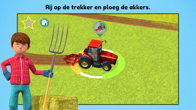 Kleine boeren” is een 3D boerderij simulatie spel. In Kleine boeren kan het kind op echte trekkers rijden, ploegen, zaaien, oogsten en de dieren voeren. Als alle taken zijn uitgevoerd verdien je een sticker. De app is gemakkelijk te spelen, er zijn duidelijke visuele aanwijzingen om aan te geven wat de bedoeling is. Het vergt wel wat van de fijne motoriek om de trekkers te besturen en naar de juiste plek te rijden.