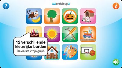 Bij deze app leert een kind matchen door 2 plaatjes die bij elkaar horen te zoeken. Er verschijnt steeds 1 plaatje in het midden met een aantal mogelijkheden er om heen. Het juiste plaatje moet naar het midden worden gesleept. Deze app heeft 3 levels, welke opbouwen in moeilijkheidsgraad. Bij deze derde versie zitten er verschillen in vorm of kleur of moet er worden gesorteerd op betekenis (bijvoorbeeld de tandpasta hoort bij de tandenborstel).