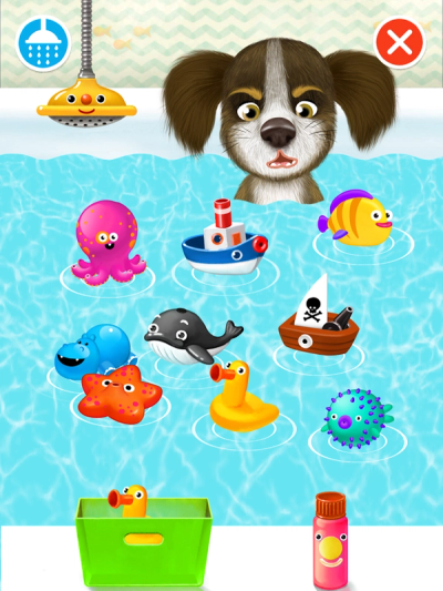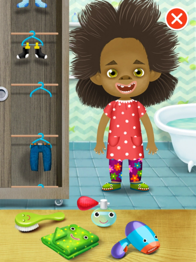 Leuke app met grappige karakters en herkenbare scenes. De app werkt zeer intuïtief. Kinderen kunnen zelf kiezen wat ze doen, ze hoeven geen vaste volgorde aan te houden dit geeft snel succeservaring. Voor hele kleintjes zijn de handelingen soms motorisch nog wat moeilijk uit te voeren. Als je alle handelingen hebt gedaan krijg je applaus. In deze app krijg je bij aantikken meteen een reactie, dit is al leuk voor hele jonge kinderen. Je kunt opdrachtjes geven om het taalbegrip te stimuleren. Benoemen van de handelingen/ voorwerpen/ personen en de volgorde stimuleert de woordenschat, het taalbegrip, het logisch vertellen en de zinsbouw. Deze app heeft geen gratis versie, alle activiteiten zijn dus meteen beschikbaar en er is geen reclame in beeld tijdens het spelen. De app is visueel iets onrustiger dan Pepi bath 1, er is meer te doen, maar dus ook meer afleiding.